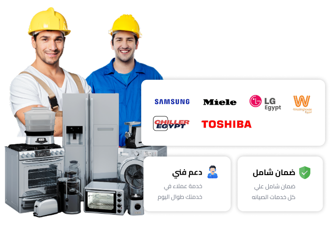 نقدم خدمة صيانة فاجور لجميع الأجهزة: الغسالات، الثلاجات، الأفران/البوتاجازات، الشفاطات، البلت إن، السخانات وغيرها، مع فحص شامل وإصلاح فوري داخل المنزل قدر الإمكان.
